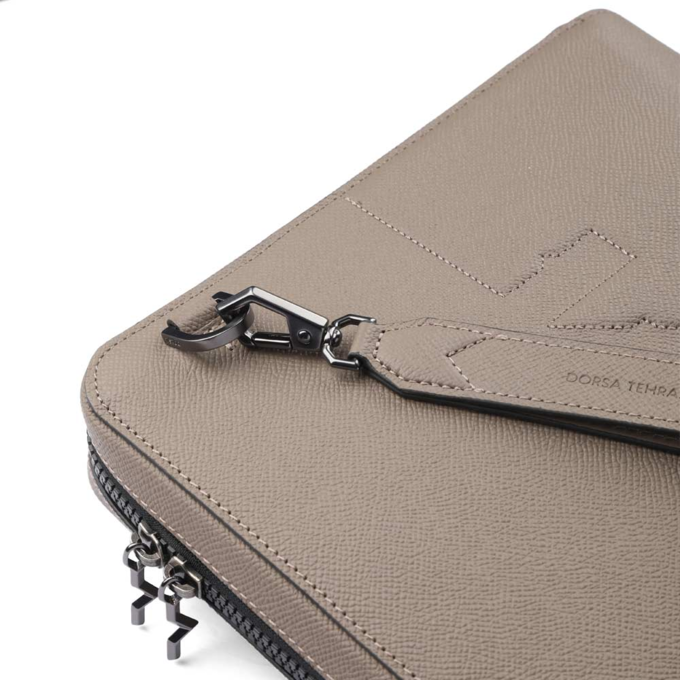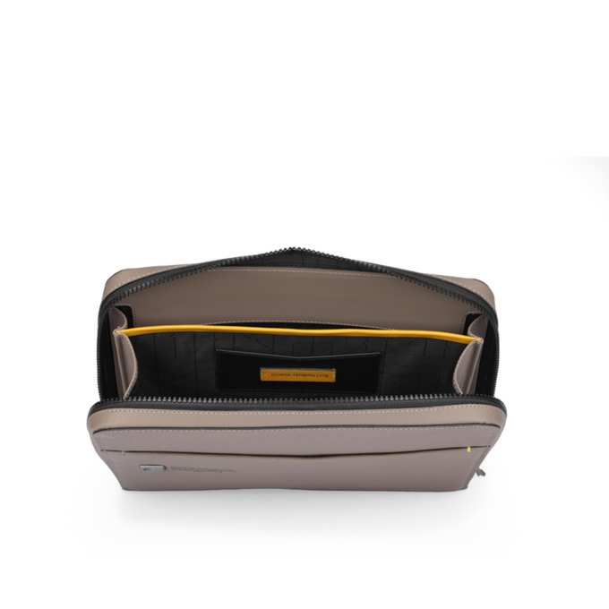 طراحی این کیف با لوگوی منحصر به فرد کتیبه دال و نوشته ی ظریف کنار آن، با ظاهر خاصی که به کیف داده است، به استایل شما شخصیت و تمایز می بخشد. این کیف با طراحی مینیمال و دوخت خاص در پشت، همراهی بینقص برای استایلهای مدرن و حرفهای است. فضای جادار و سازمان یافتهاش، به شما اجازه میدهد مدارک و وسایل ضروریتان را بهراحتی در دسترس داشته باشید و به سبک دلخواه به صورت دستی توسط بند و یا زیر بازو آن را حمل کنید. این کیف، ترکیبی از زیبایی و کارایی را ارائه میدهد و با جلوهای مدرن و قدرتمند، انتخابی ایدهآل برای کسانی است که میخواهند در هر لحظه استایل حرفهای خود را به نمایش بگذارند.