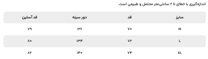 علاقه به سفارش آنلاین ندارید؟ ما به شما کمک می کنیم تا بدانید این محصول را چگونه تهیه کنید. کافی است سایز مورد نظر را انتخاب کنید ، سپس بر روی دکمه “ استعلام موجودی در فروشگاه “ کلیک کنید. تا ما فروشگاه هایی که محصول مورد نظرتان را دارند به شما نشان دهیم.