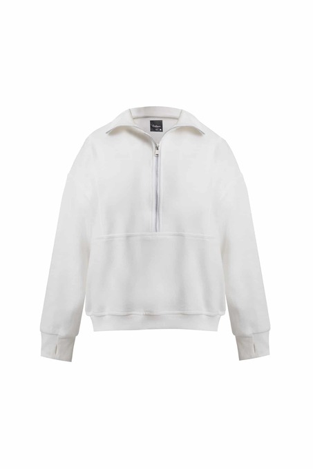طراحی نیمزیپ جلو، علاوه بر جذابیت بصری، امکان تنظیم راحت دما و استایل را فراهم میکند. تنخور آزاد و فرم کژوال آن باعث میشود با انواع شلوار جین، لگ یا شلوار اسپرت بهراحتی ست شود.