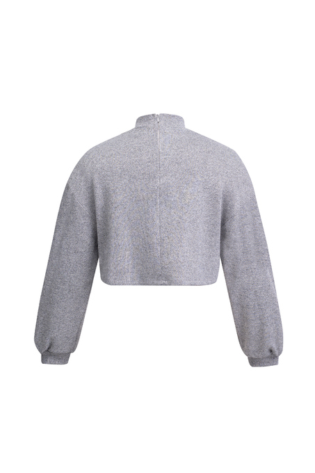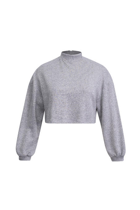 رنگ نقرهای این مدل بهتنهایی جلوهای خیرهکننده دارد و به آسانی با دامنهای مشکی، شلوارهای جذب یا حتی شلوار پارچهای کلاسیک ست میشود. بافت سبک و راحت بلوز، در عین درخشش ظاهری، احساس سبکی و آزادی حرکت را به همراه دارد.