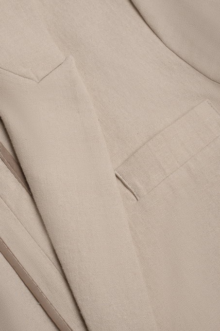 پارچهی لنین این کت با بافتی تنفسپذیر و وزن سبک، گزینهای ایدهآل برای روزهای خنک بهاری و تابستانیست. چه آن را روی تاپ یا شومیز بپوشید، چه با شلوار یا دامن ست کنید، در هر حالت استایلی مرتب، تمیز و در عین حال راحت خواهید داشت.