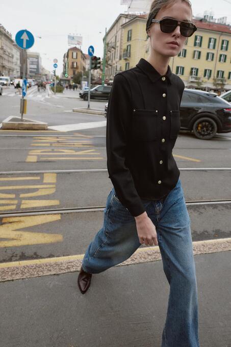 شومیز زارا با کد 495238041-C04745226800015-I202 ( KREP VÜCUDA OTURAN GÖMLEK )