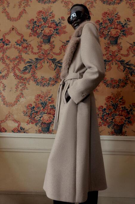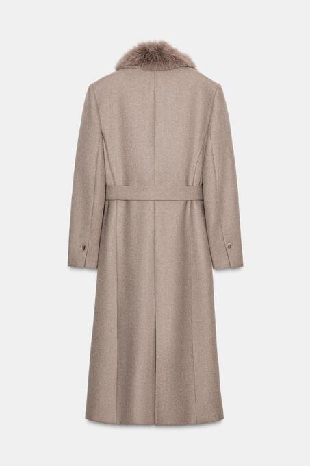 پالتو زارا با کد 483238182-C08535107736000-I202 ( KEMERLİ SUNİ KÜRK YAKA YÜN KABAN )