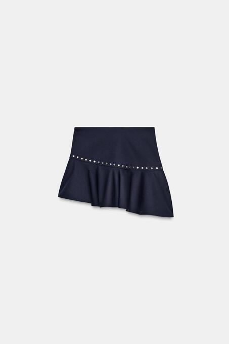 دامن کوتاه زارا با کد 485753275-C03067519401000-I202 ( ZIMBA DETAYLI ASİMETRİK FIRFIRLI ETEK )
