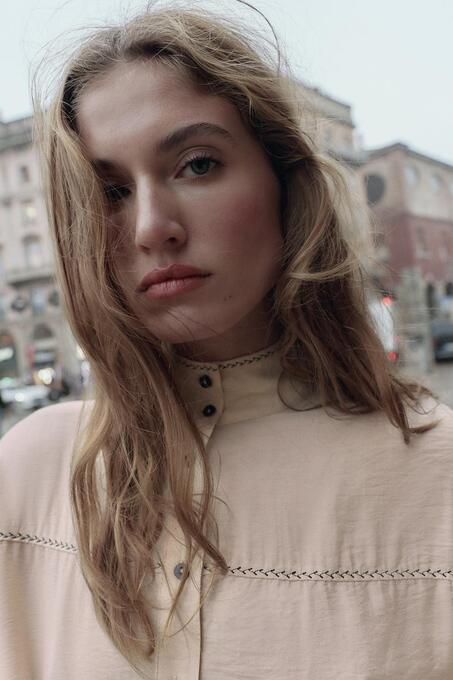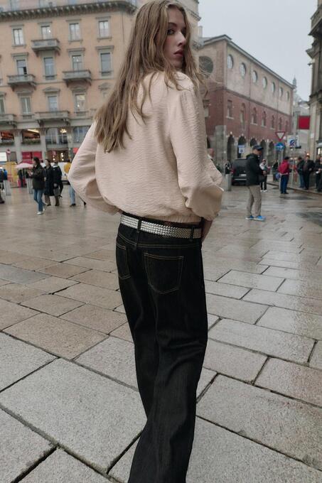 شومیز زارا با کد 487531355-C03897189712000-I202 ( KONTRAST DİKİŞLİ BALON KOL ÜST )