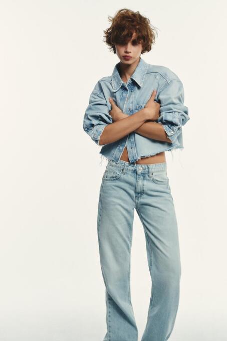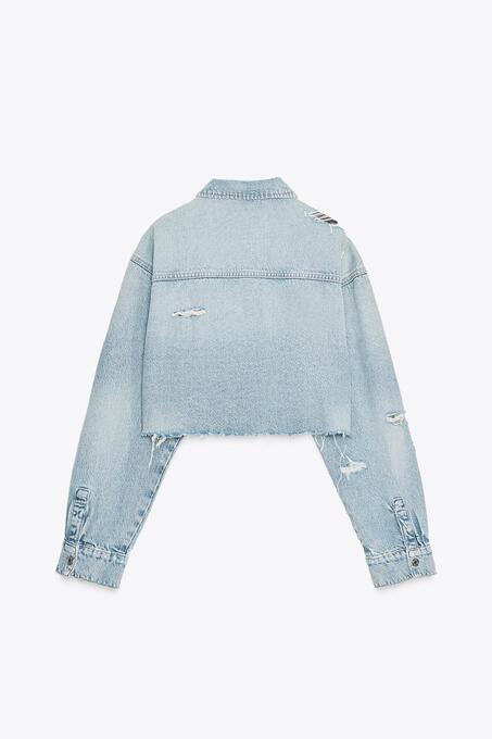 کت جین زارا با کد 453978631-C05252274400000-I202 ( YIRTIKLI TRF CROP DENIM İNCE CEKET )