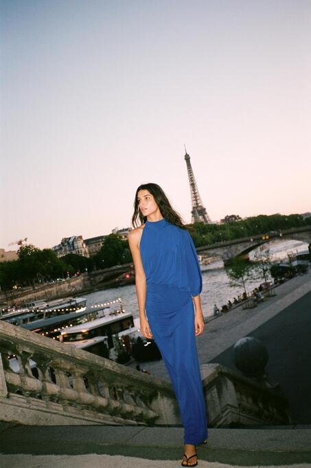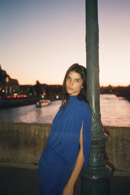 پیراهن روزمره زارا با کد 463739066-C04661235429000-I202 ( DRAPELİ PELERİN ELBİSE )