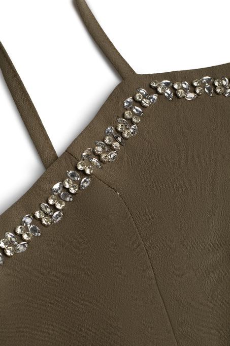 جنس کرپ بهکار رفته در این پیراهن، با بافت نرم، سبک و در عین حال ساختارمند، به لباس حالتی شیک و ایستا میبخشد که زیبایی فرم بدن را به بهترین شکل نمایش میدهد. طراحی مینیمال و فاقد شلوغیهای اضافی، این مدل را به گزینهای همهفصل و بسیار کاربردی تبدیل کرده است.
