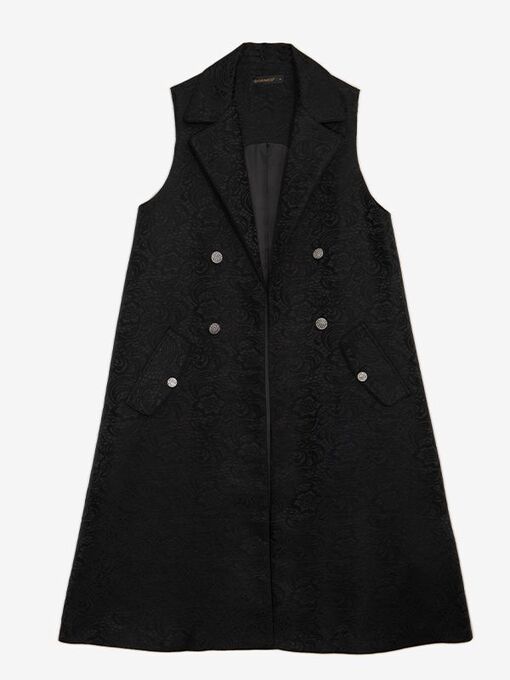 وست بلند زنانه ژاکارد مجلسی جیب نما یقه انگلیسی 70104 مشکی