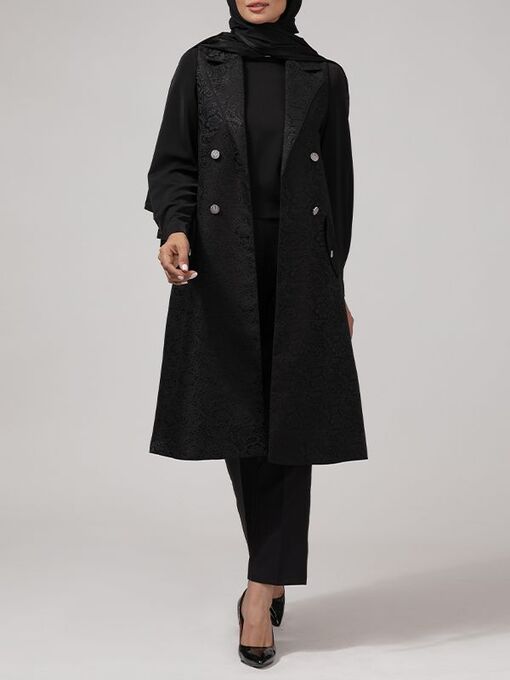 - وست بلند زنانه ژاکارد مجلسی جیب نما یقه انگلیسی 70104 مشکی