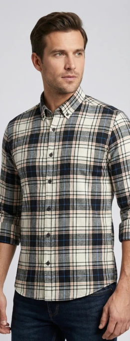 طراحی چهارخانه کلاسیک در ترکیب با آستین بلند، این مدل را برای استایلهای روزمره، نیمهرسمی و حتی پوشش اداری مناسب میسازد.
