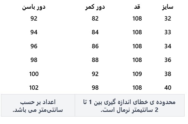 قد شلوار برای سایز 32 حدود 108 سانتیمتر بوده و فرم راسته آن باعث میشود برای انواع فرم بدن مناسب باشد.