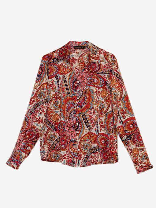 - شومیز زنانه ساتن طرح دار یقه هفت آستین بلند 30109 قرمز