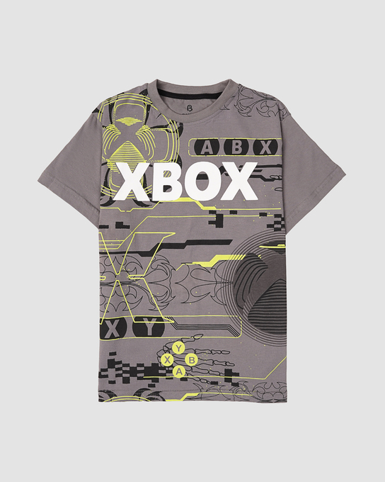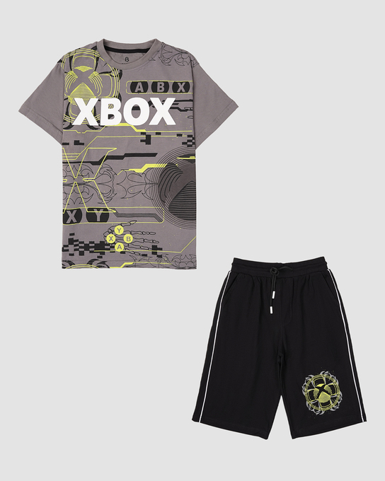 - ست تیشرت و شلوارک پسرانه طرح X_BOX طوسی