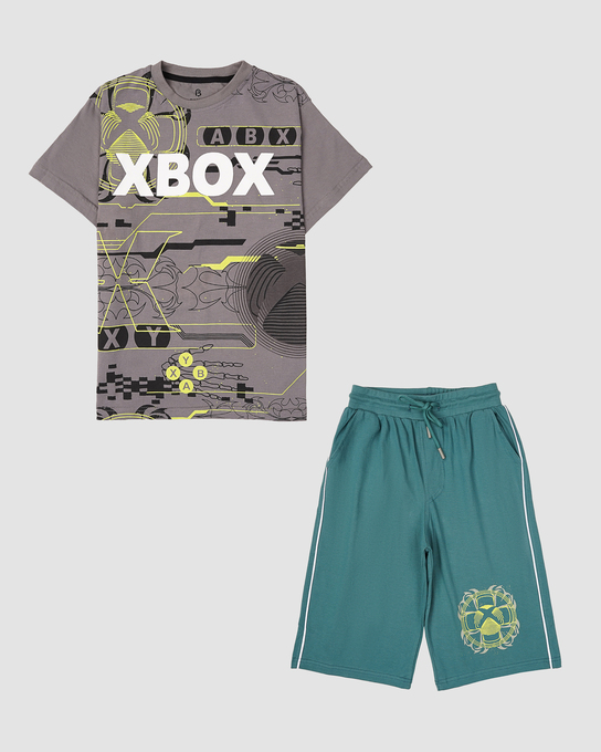 - ست تیشرت و شلوارک پسرانه طرح X_BOX سبز