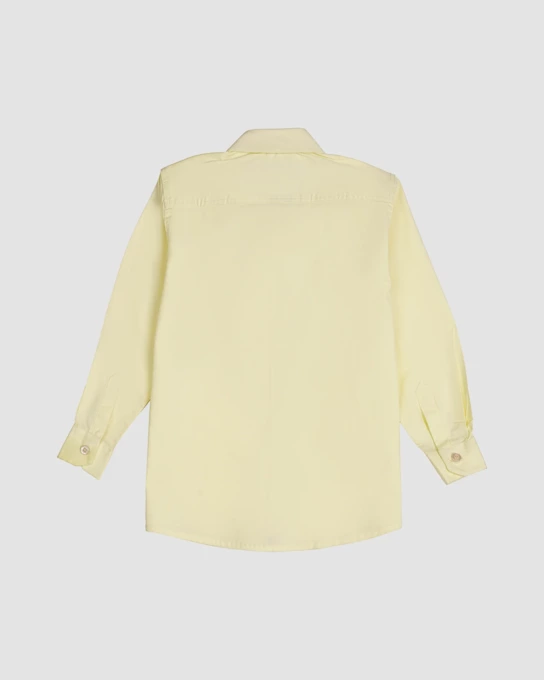 پیراهن پسرانه پوپلین دکمه مخفی رنگ لیمویی