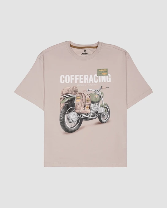 - تیشرت پسرانه مدل CAFFERACING کرم
