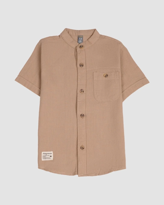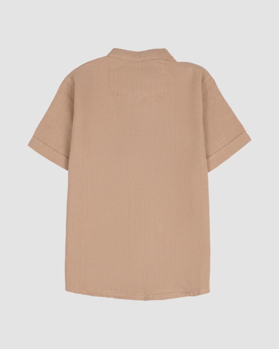 پیراهن پسرانه مدل کنفی یقه دیپلمات نخودی
