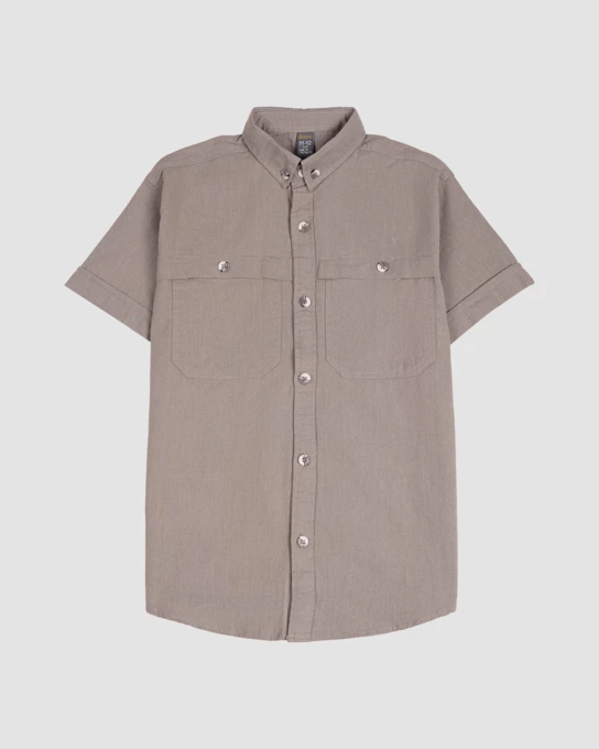 - پیراهن پسرانه مدل کنفی خاکی