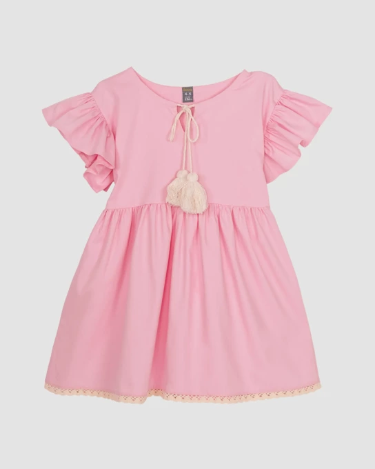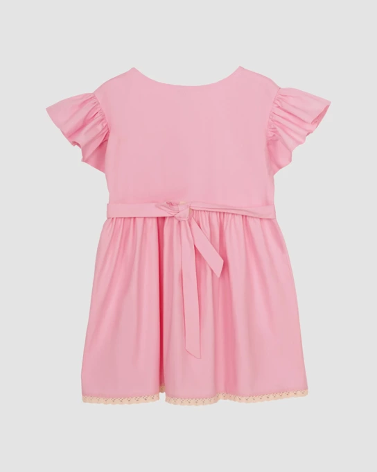 پیراهن دخترانه مدل گیپور دوزی صورتی