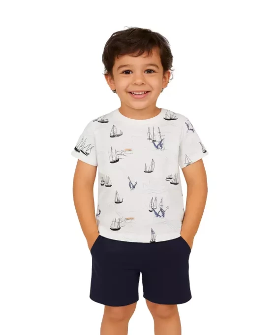 ست تیشرت و شلوارک پسرانه مدل تمام چاپ قایقی