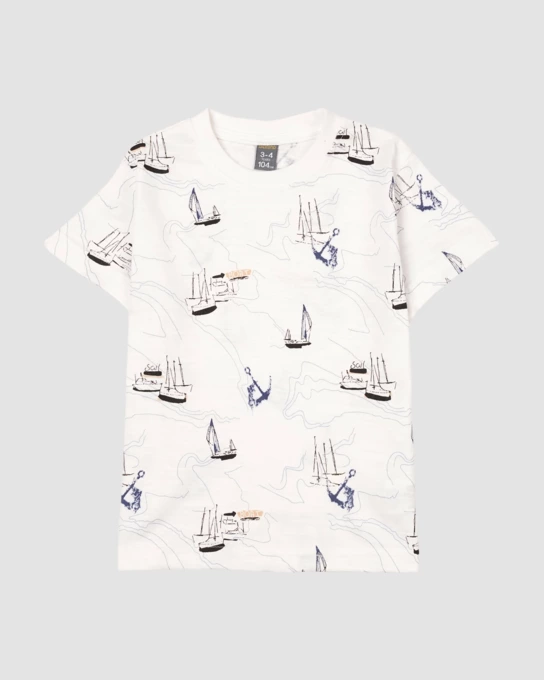 - ست تیشرت و شلوارک پسرانه مدل تمام چاپ قایقی