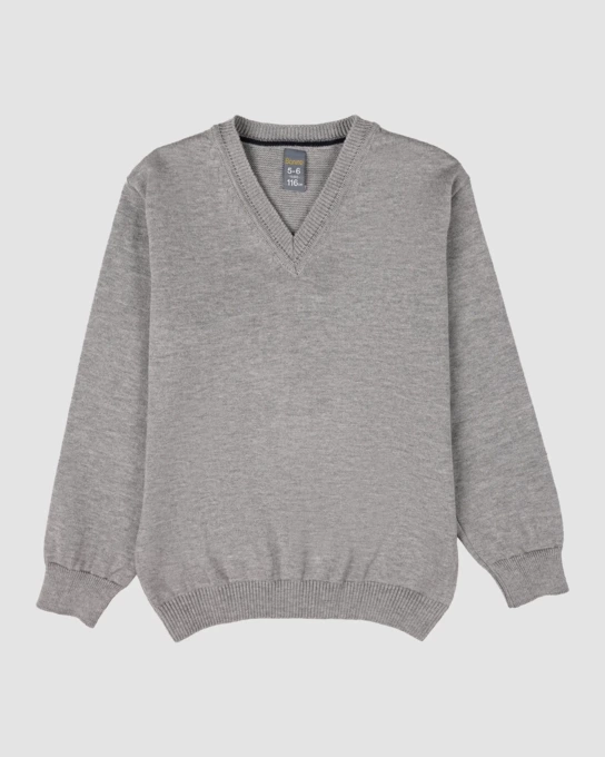 - پلیور بافت پسرانه مدل یقه هفت طوسی