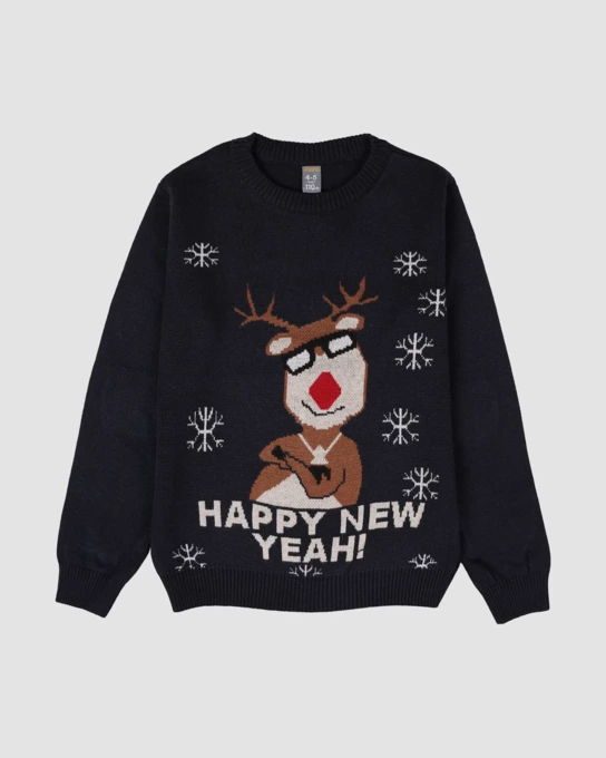 - پلیور بافت پسرانه طرح گوزن سرمه ای