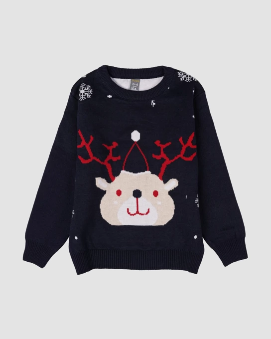 - پلیور بافت پسرانه مدل یقه گرد گوزن شاخ دار