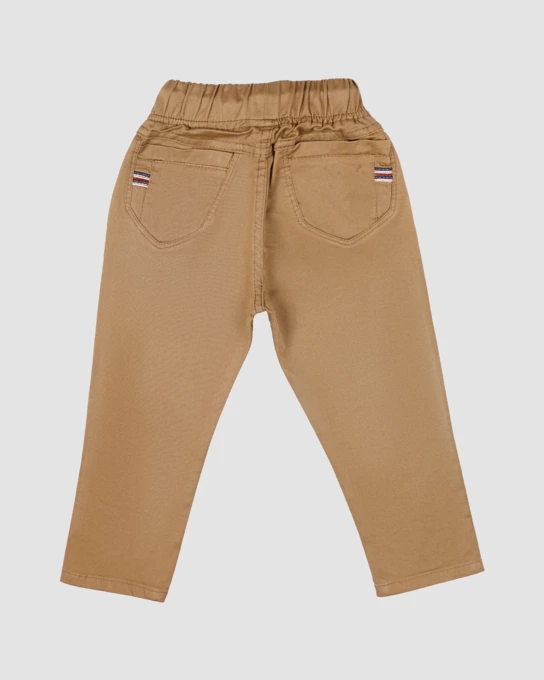 شلوار کتان پسرانه مدل POLO دورکش رنگ شتری