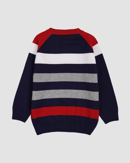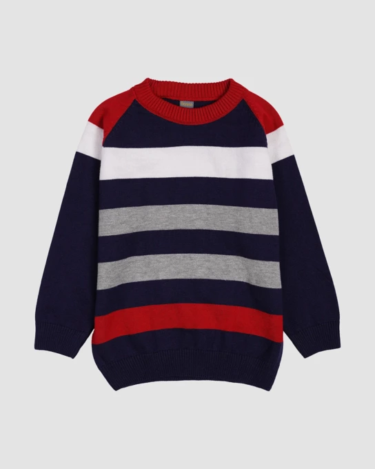 پلیور بافت پسرانه مدل راه راه سرمه ای