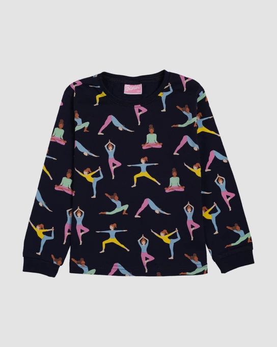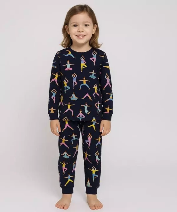 - ست بلوز و شلوار دخترانه طرح YOGA سرمه ای