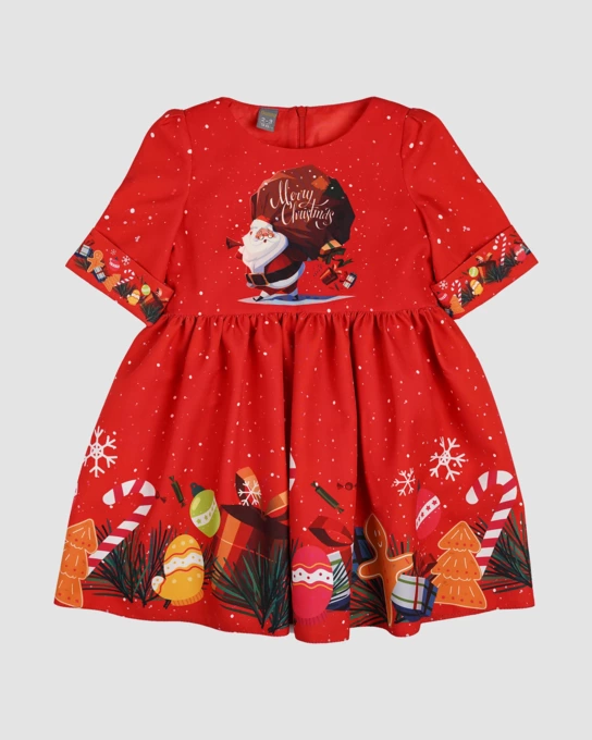 پیراهن دخترانه مدل آستین سه ربع طرح کریسمس