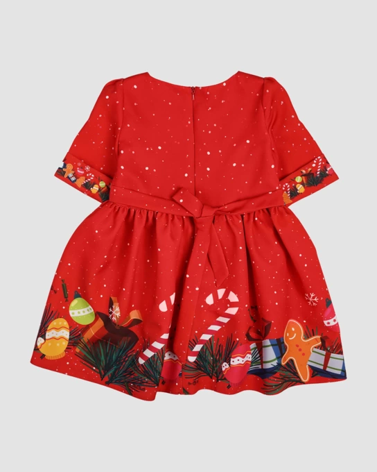 - پیراهن دخترانه مدل آستین سه ربع طرح کریسمس