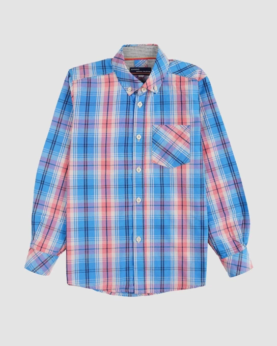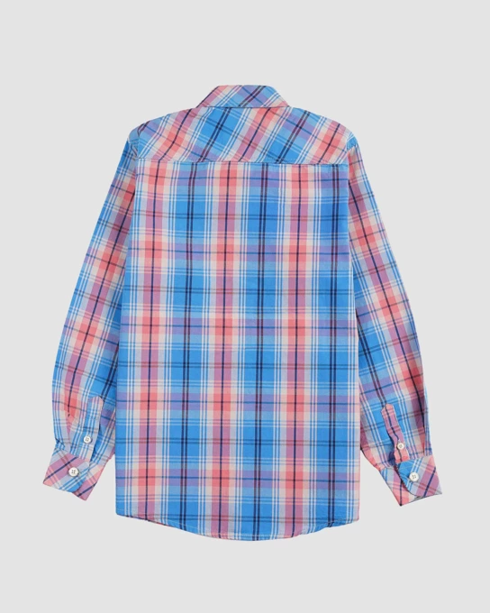 پیراهن شومیزه پسرانه طرح چهارخانه آبی کمرنگ قرمز