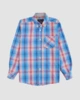 - پیراهن شومیزه پسرانه طرح چهارخانه آبی کمرنگ قرمز