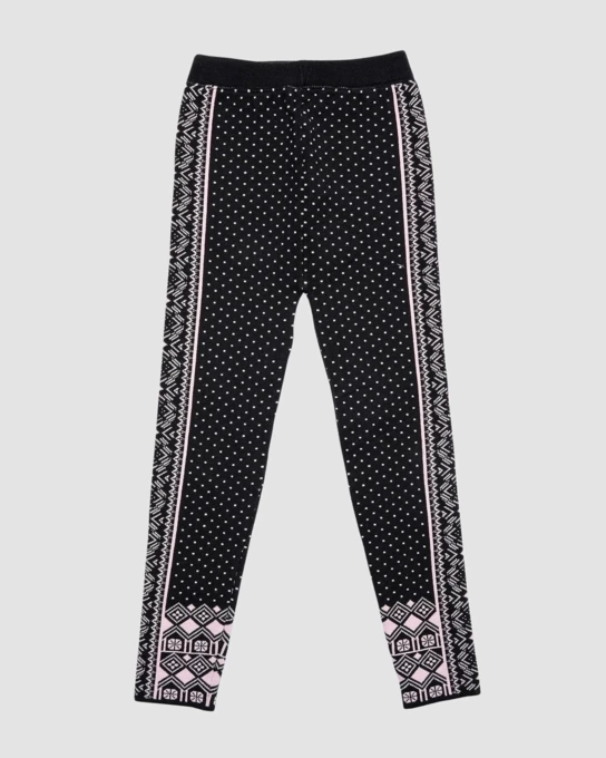 - شلوار لگ بافت دخترانه بغل طرح دار مشکی صورتی