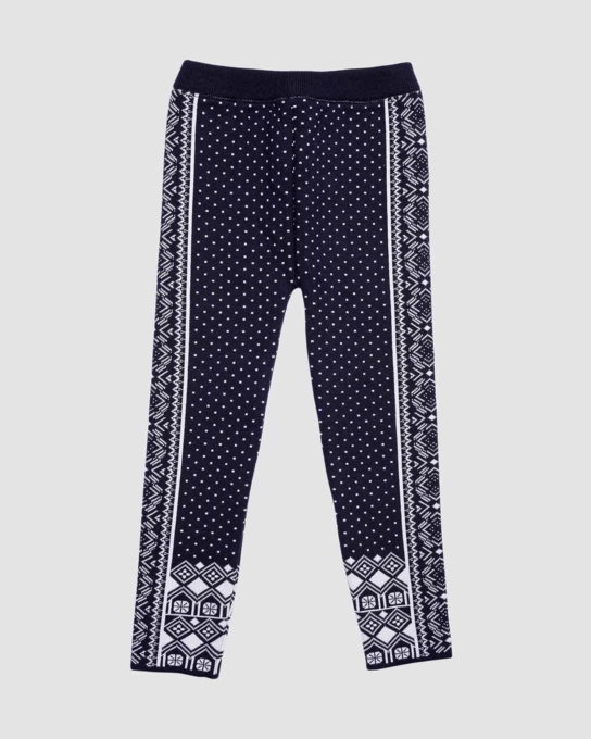 - شلوار لگ بافت دخترانه بغل طرح دار سرمه ای سفید