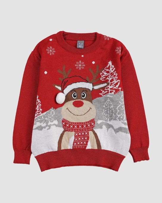 پلیور بافت پسرانه طرح گوزنی و گل یخ