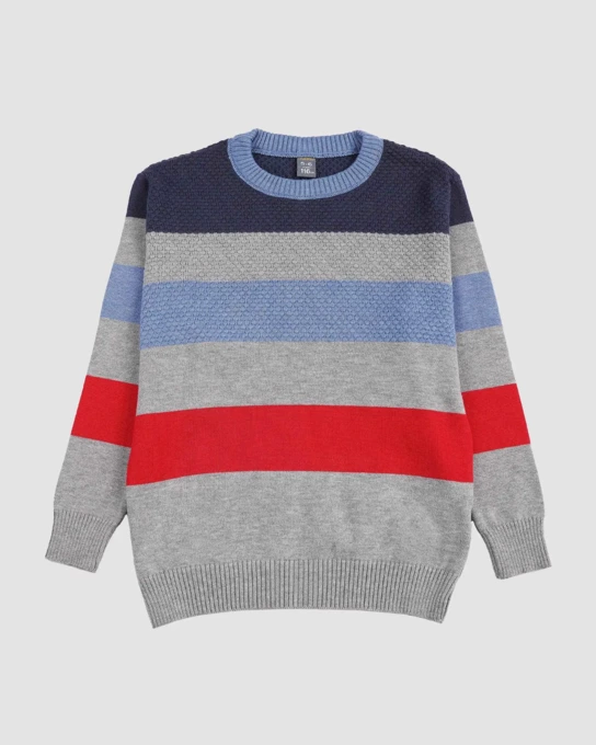 - پلیور بافت پسرانه راه راه مدل فندقی