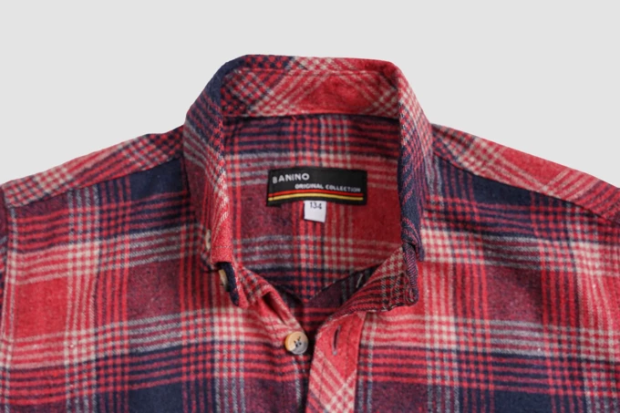 - پیراهن شومیزه پسرانه پارچه TT طرح چهارخانه قرمز