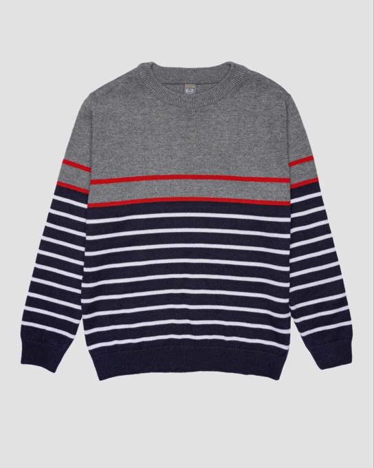 پلیور بافت پسرانه طرح راه راه گلدوزی
