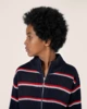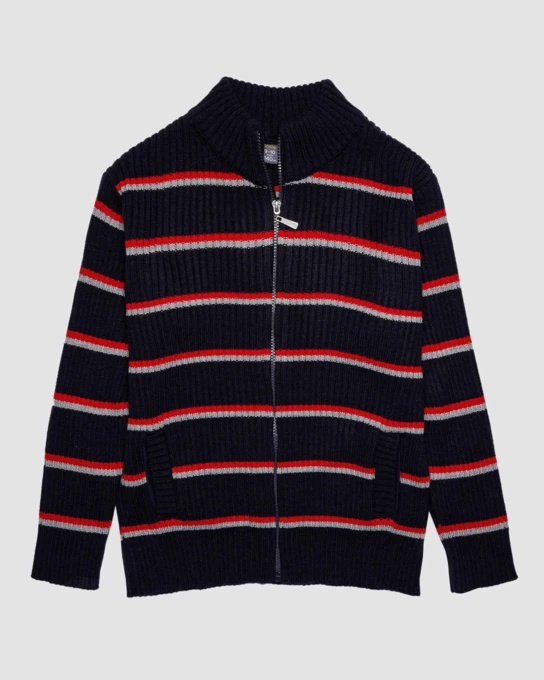 - ژاکت بافت پسرانه طرح راه راه زیپی سورمه ای