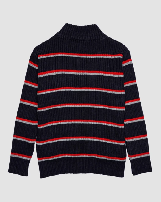 ژاکت بافت پسرانه طرح راه راه زیپی سورمه ای