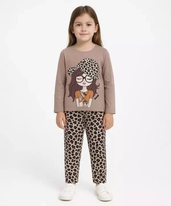 - ست بلوز شلوار دخترانه طرح پلنگی دختر