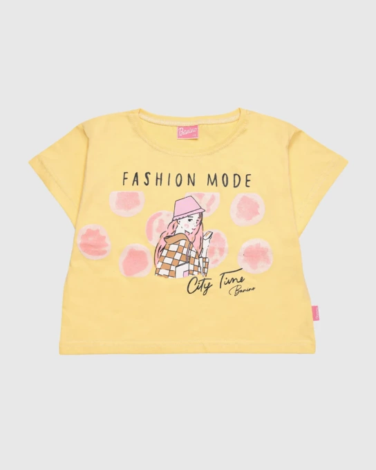 - تی شرت دخترانه طرح FASHION MODE رنگ زرد