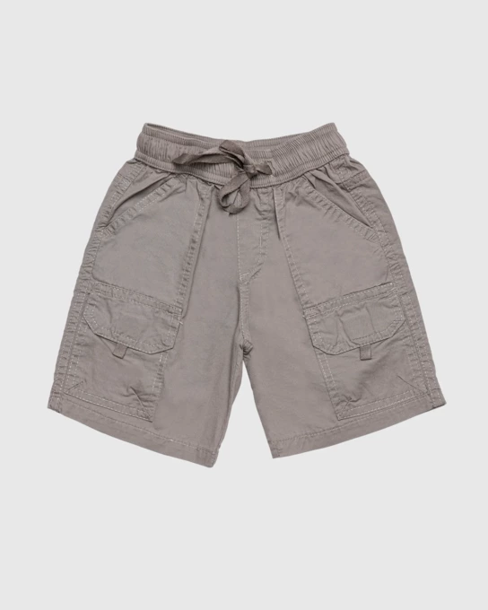 شلوارک کتان پسرانه جیب دار رنگ خاکی