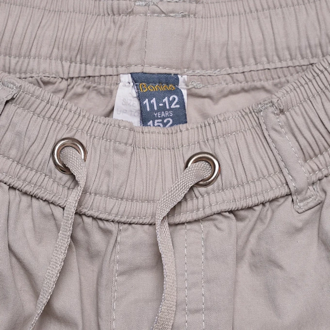 - شلوارک کتان پسرانه جیب دار رنگ خاکی