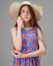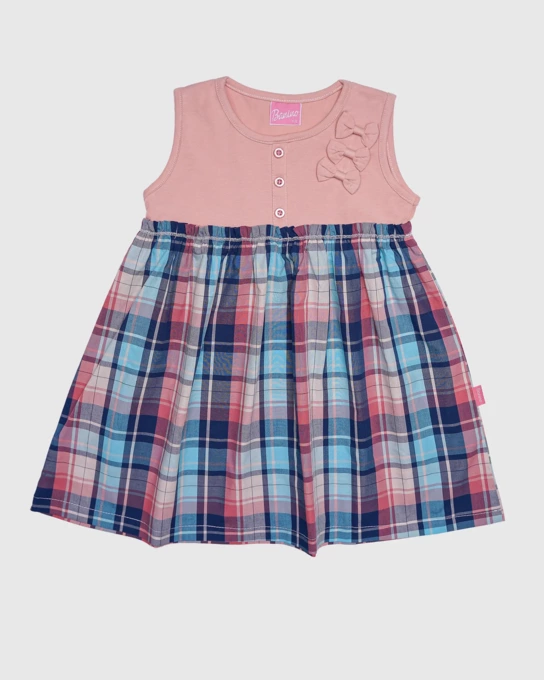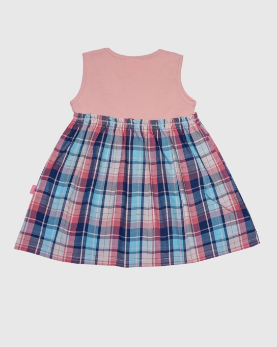 سارافون دخترانه طرح چهارخانه صورتی آبی