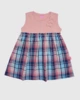 - سارافون دخترانه طرح چهارخانه صورتی آبی